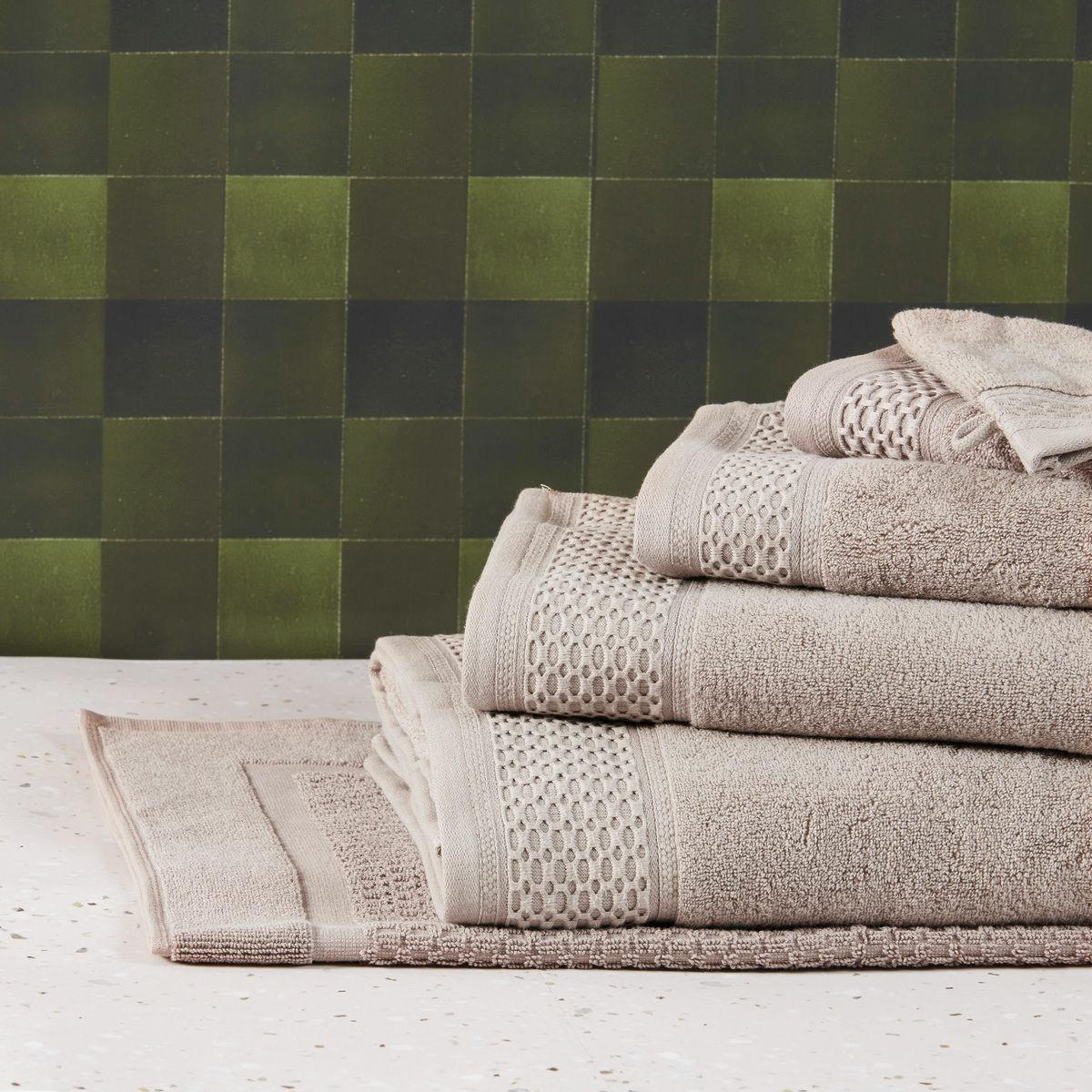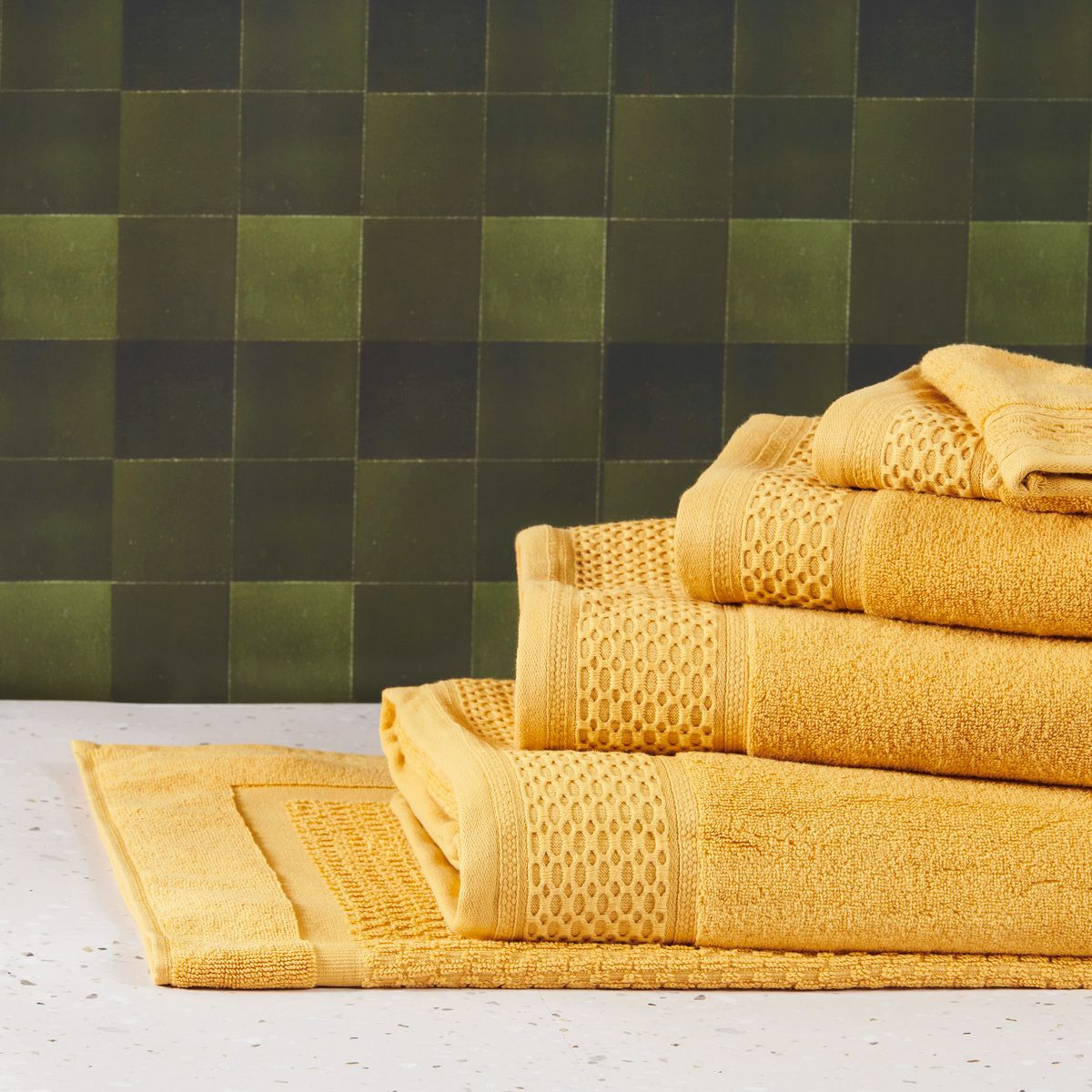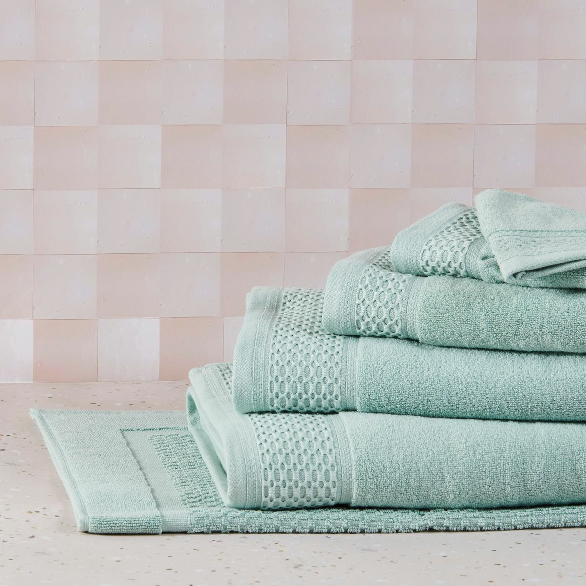 Cette gamme se décline en serviettes, draps de bain et douche, gants de toilette, peignoirs, paréos, éponges cheveux et tapis de bain.