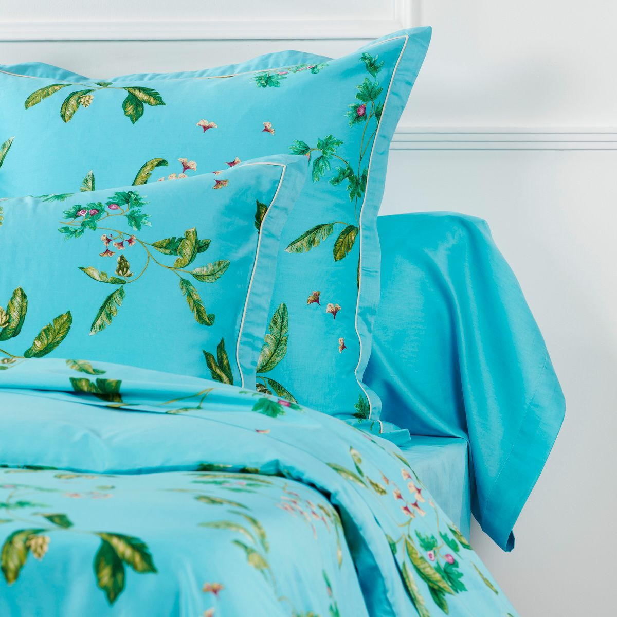 La parure de lit Grâce apporte une touche de fraîcheur et de nature à votre chambre avec son imprimé floral aux couleurs vives. Conçu en satin de coton 120 fils/cm², ce linge de lit offre un toucher soyeux et une grande douceur pour un sommeil confortable.