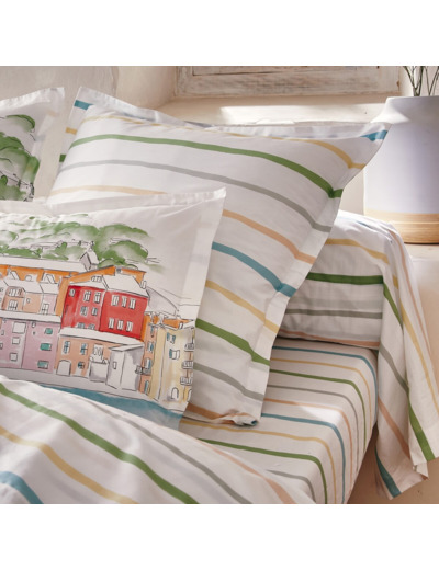 Découvrez toute la collection Paysage Varois comprenant : housse de couette, drap-housse, drap plat, taie d'oreiller et taie de traversin.