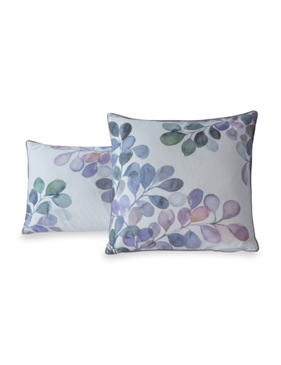 La taie d'oreiller est conçue en forme de sac et est double face : une face imprimée, une face unie parme.
