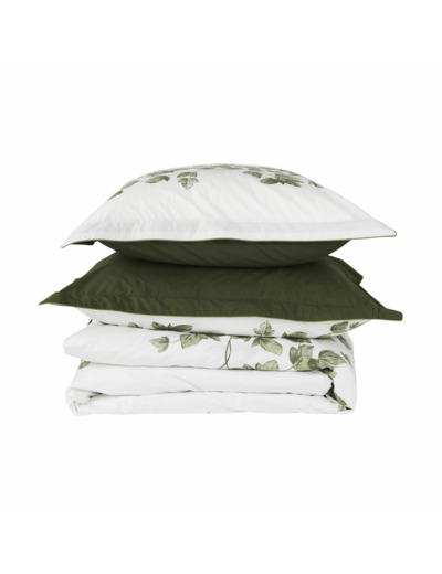 Sublimez votre chambre avec la parure de lit Lierre. Confectionnée en percale de coton 80 fils/cm², cette collection allie douceur et respirabilité pour un confort optimal. Chaque élément est coordonné pour vous offrir un style botanique raffiné et contemporain.