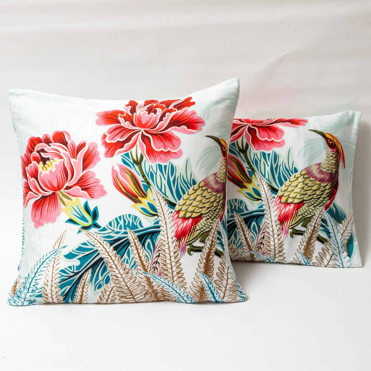 A la fois indispensable du quotidien et véritable atout déco, laissez-vous tenter par cette parure Lyrique. Elle crée une déco à couper le souffle avec ses motifs de feuillages exotiques, fleurs et d'oiseaux d’ailleurs travaillés dans des coloris actuels et tendance. En satin de coton, elle vous enveloppera de sa douceur tout au long de la nuit.