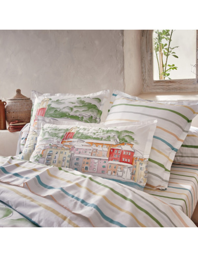 Découvrez toute la collection Paysage Varois comprenant : housse de couette, drap-housse, drap plat, taie d'oreiller et taie de traversin.