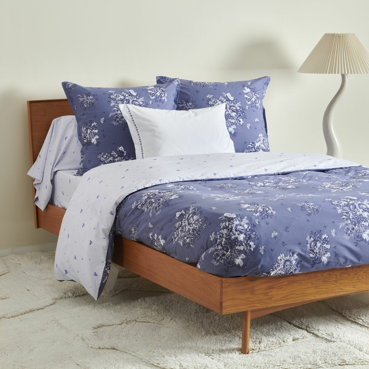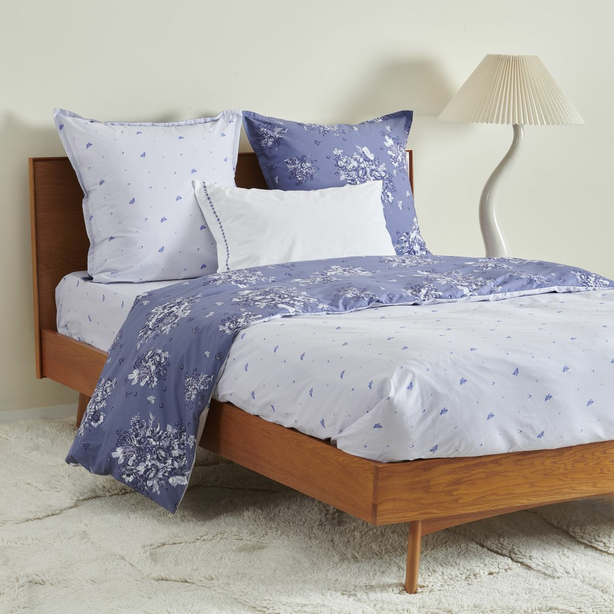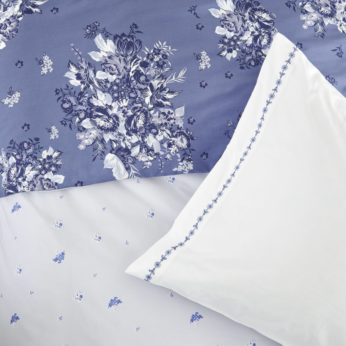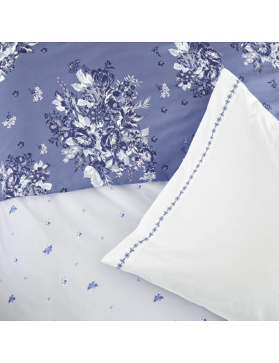 La parure Poème Bleu sublime votre chambre avec son élégance réversible. En percale de coton 80 fils, elle associe confort et raffinement grâce à un tissage serré qui garantit douceur et tenue durable.