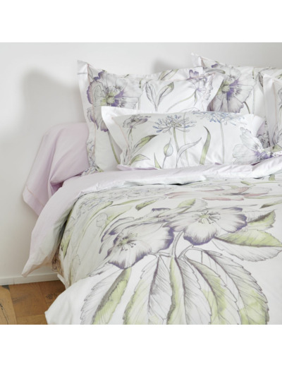 Confectionnée en percale de coton 80 fils/cm², cette parure allie douceur, qualité et raffinement pour des nuits tout en confort.