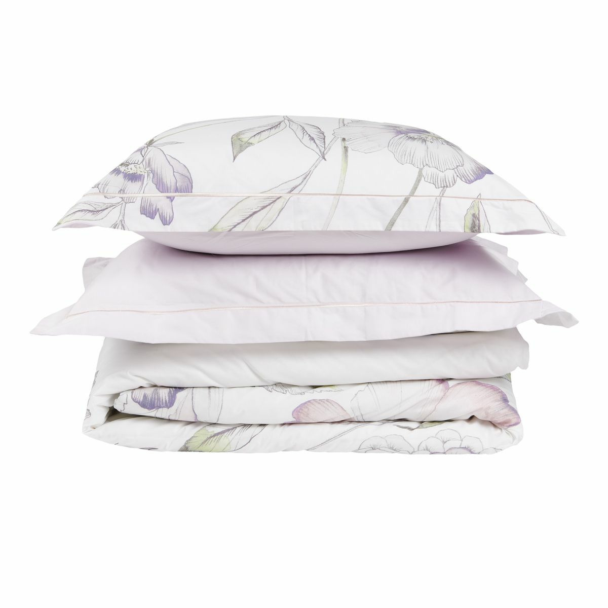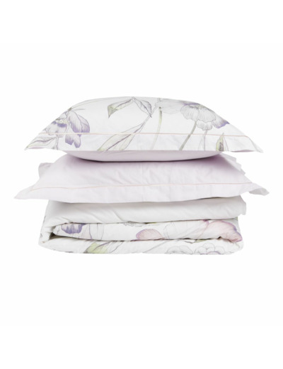Son design floral aquarellé met en scène de délicates fleurs aux nuances subtiles de violet, de vert tendre et de rose poudré. Cette composition raffinée crée une ambiance romantique et apaisante, idéale pour une chambre empreinte de douceur. Son revers est unie rose pâle pour varier les styles selon vos envies, offrant une touche plus sobre et élégante.