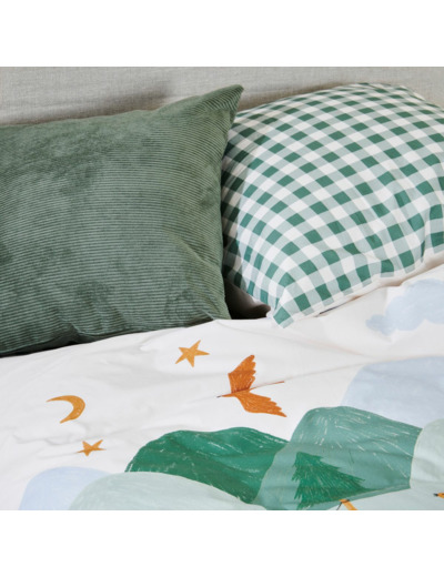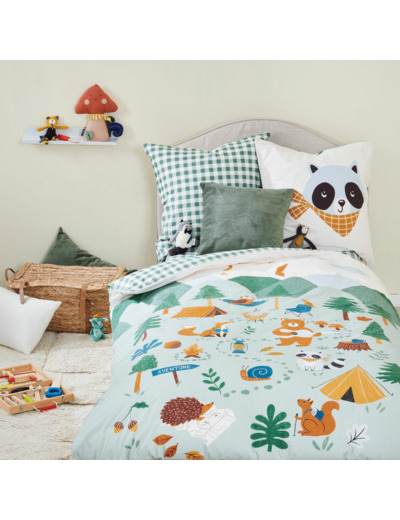 Craquez pour la parure de lit Les Louveteaux, une création pleine de tendresse et d’imagination. Réalisée en percale de coton, elle offre une grande douceur et une excellente tenue au fil des lavages. Son motif forêt peuplé d’animaux malicieux invite à l’aventure et à de jolis rêves.