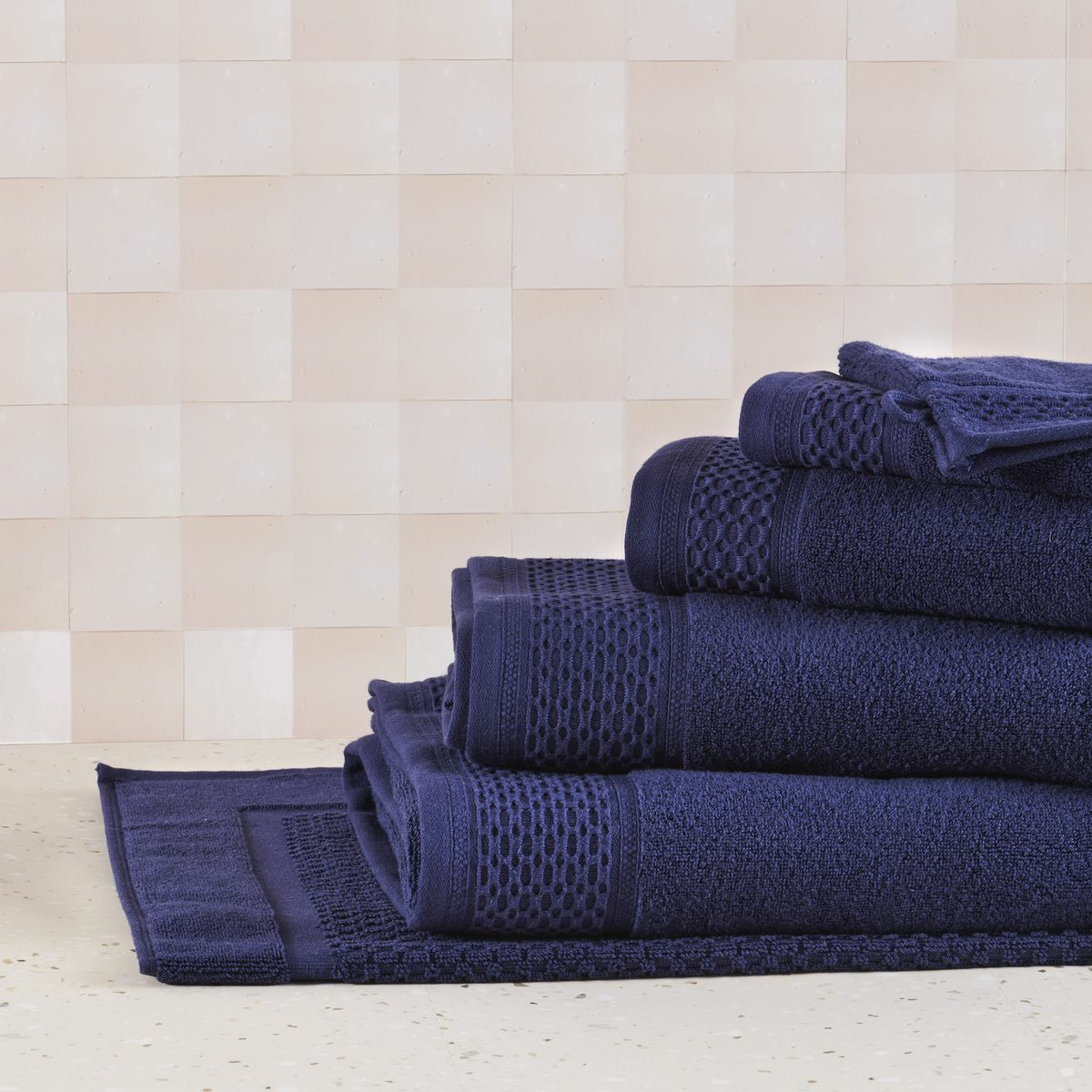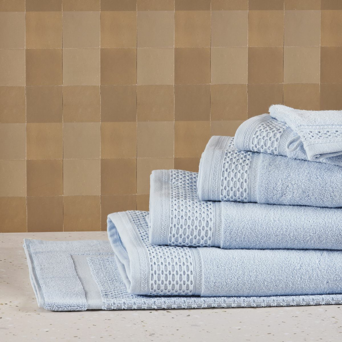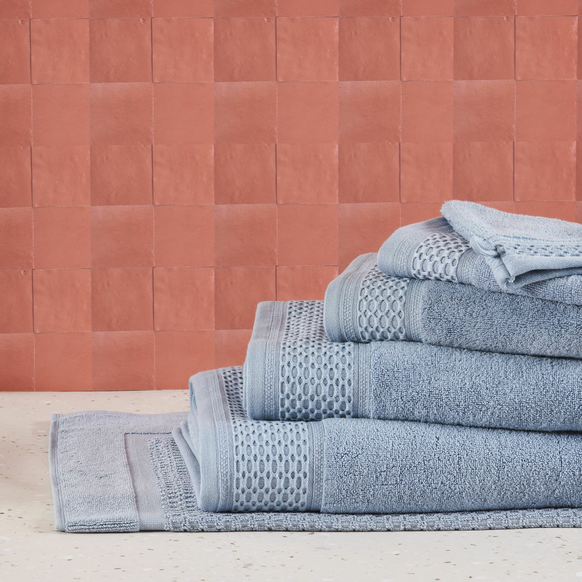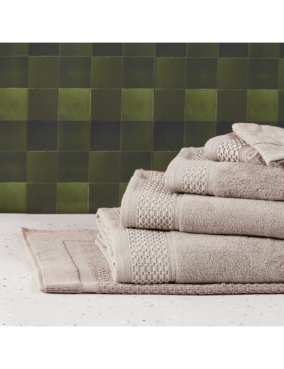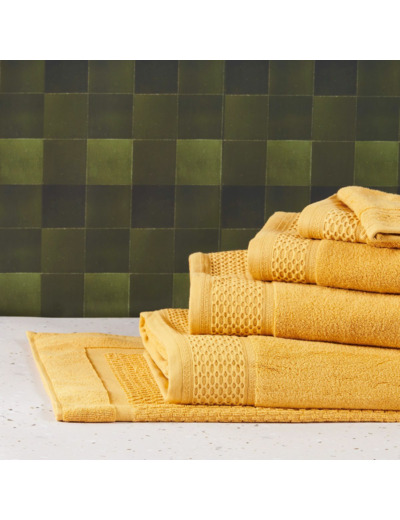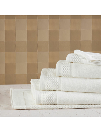 Cette gamme se décline en serviettes, draps de bain et douche, gants de toilette, peignoirs, paréos, éponges cheveux et tapis de bain.