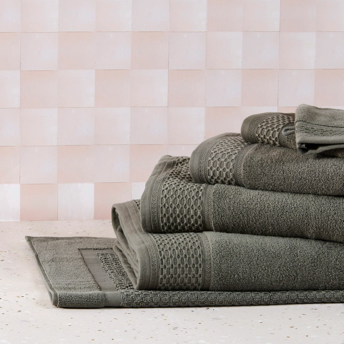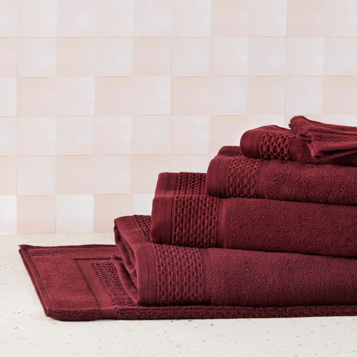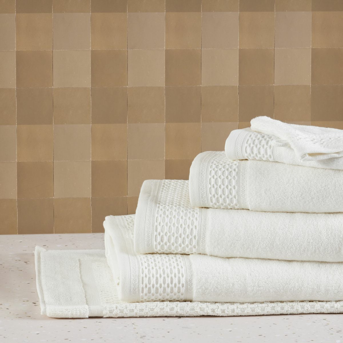 Cette gamme se décline en serviettes, draps de bain et douche, gants de toilette, peignoirs, paréos, éponges cheveux et tapis de bain.