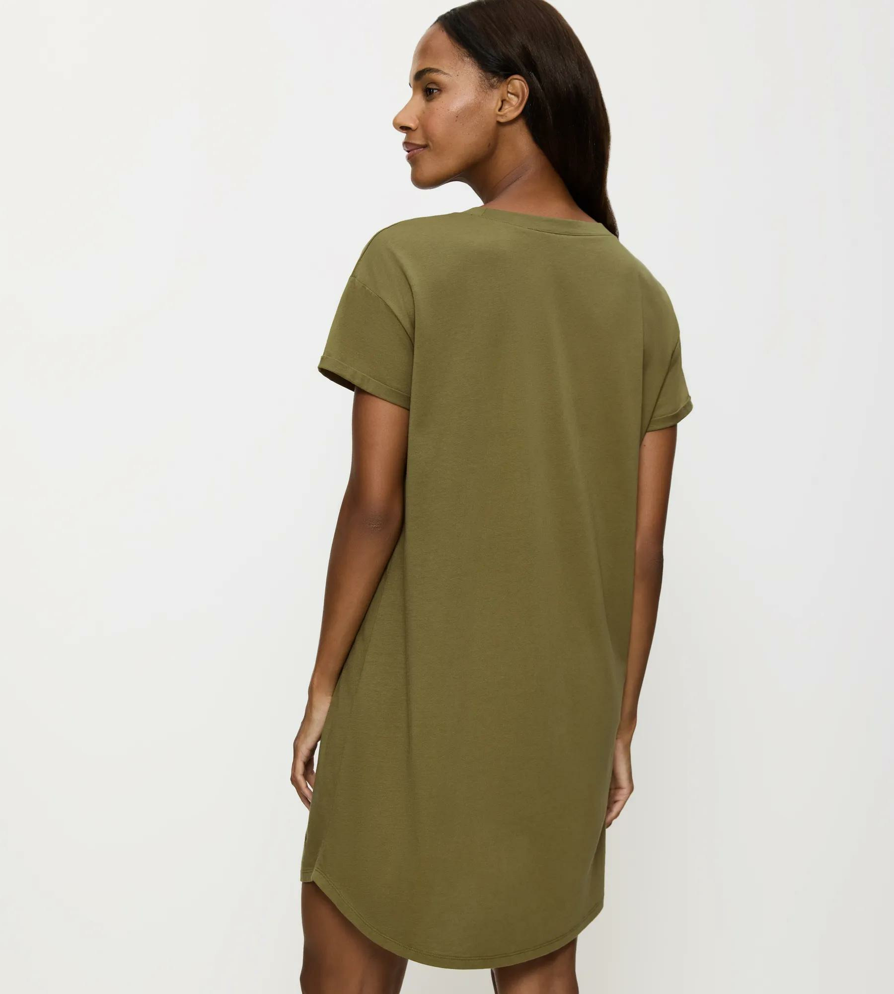 Our all-time favourite nightdress, designed with the perfect balance of comfort and ease. The ribbed crew neck, turned-up short sleeves, and chest pocket lend a contemporary look with a comfortable fit. Its rounded hem creates a flattering silhouette.