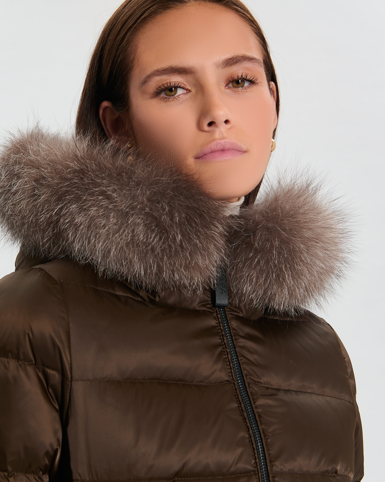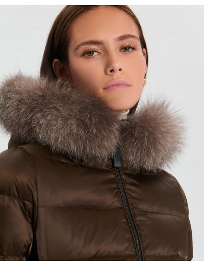 La doudoune DALYA vous offre chaleur et style avec sa capuche en fourrure véritable et son rembourrage en duvet.