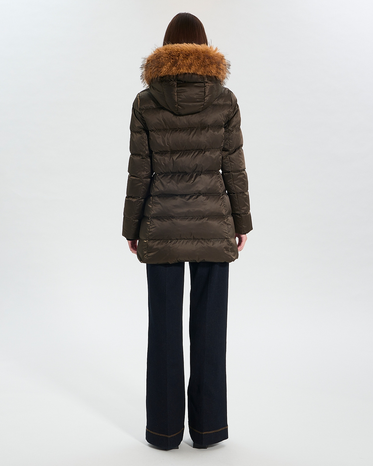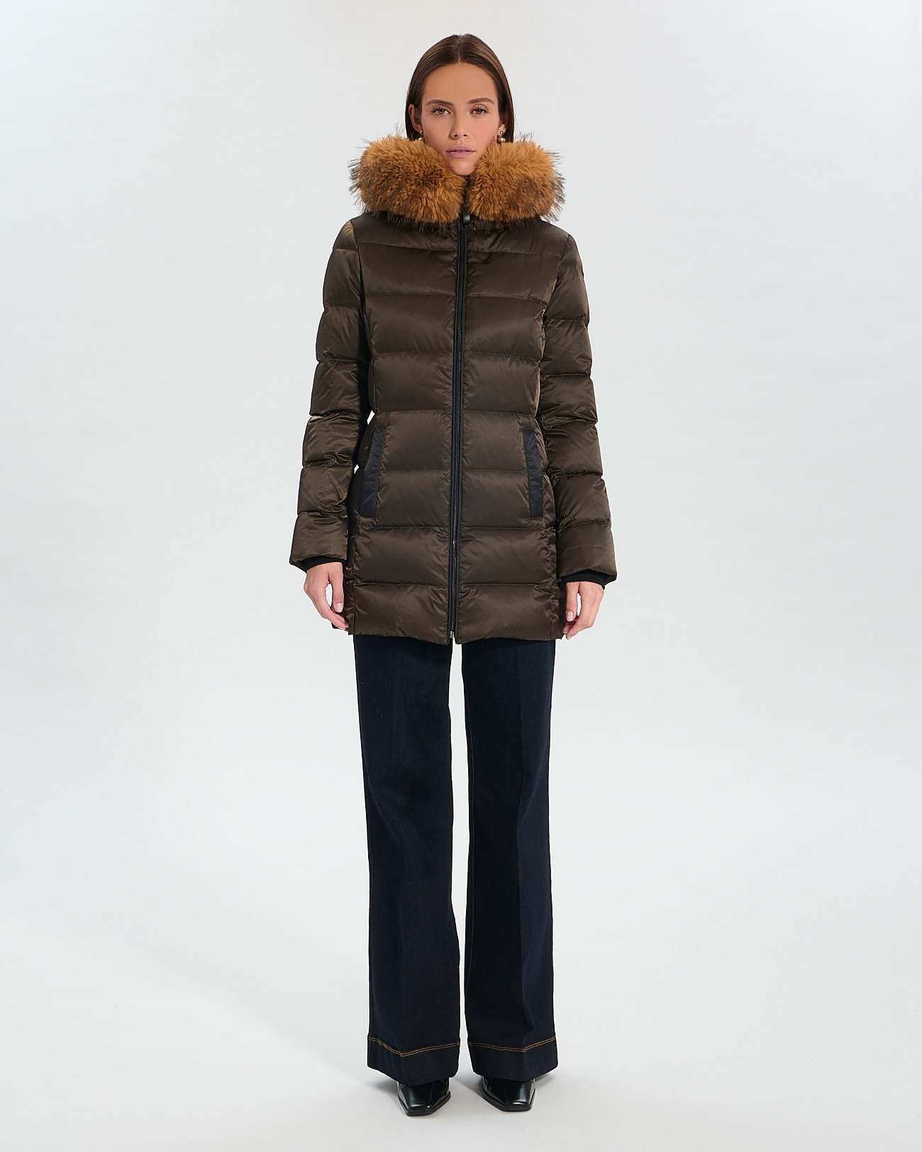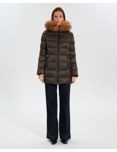 La doudoune DALYA vous offre chaleur et style avec sa capuche en fausse fourrure et son rembourrage en duvet.