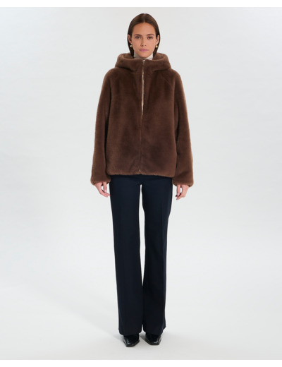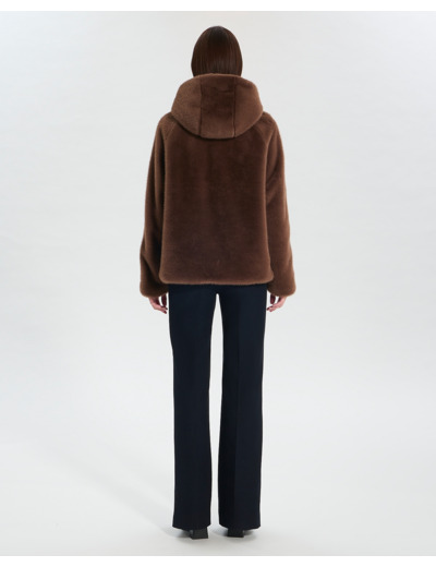 Ce manteau court en fausse fourrure taupe vous enveloppe de douceur tout en ajoutant une touche sophistiquée à vos tenues.