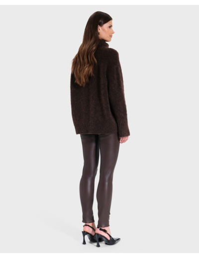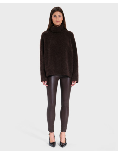 Découvrez la féminité de notre pantalon skinny en cuir chocolat.