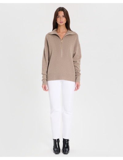 Optez pour une allure décontractée et stylée avec ce pull mi-long, rehaussé d'un col camionneur. Son coloris taupe apporte une touche chaleureuse à vos tenues.
