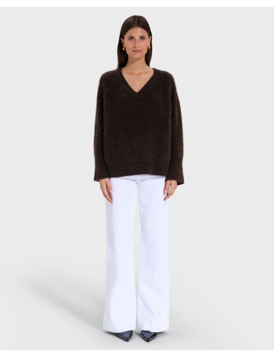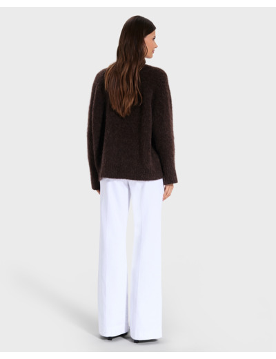 Le pull chocolat NUVOLA est un basique, alliant style et confort avec sa coupe intemporelle et sa matière mohair.