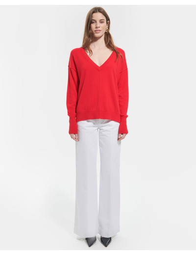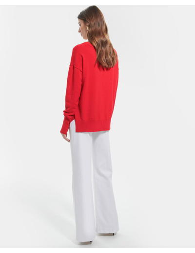 Craquez pour la teinte rouge vibrante du pull Pucci. Arborant un décolleté flatteur en V, il deviendra un essentiel de votre garde-robe.ul Pull ample Manches longues Décolleté col V Détail couture en surpiqure devant et derrière Manches bracelet Coloris rouge