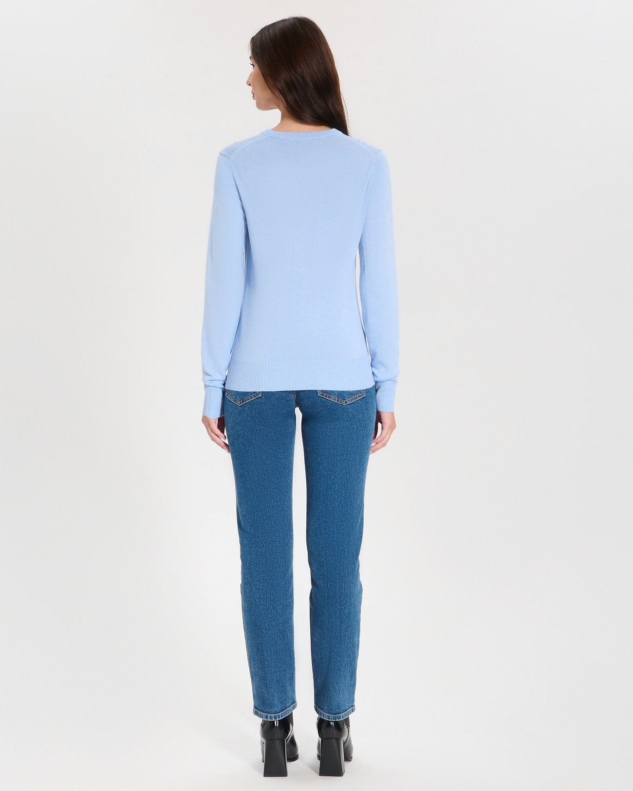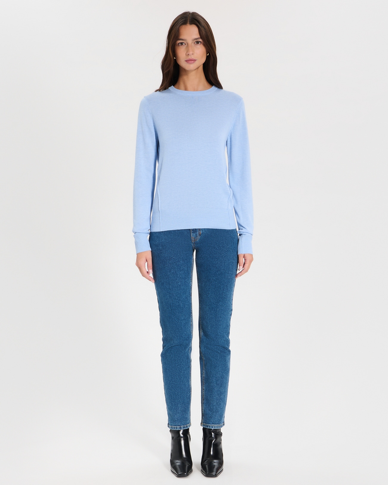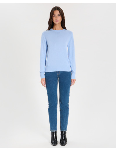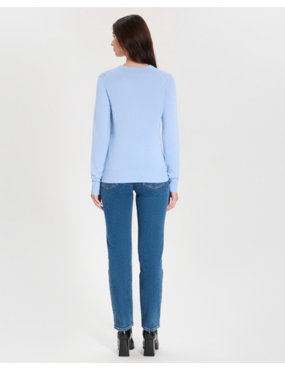 Pull à manches longues Coloris bleu ciel Col rond Détail surpique sur les côtés