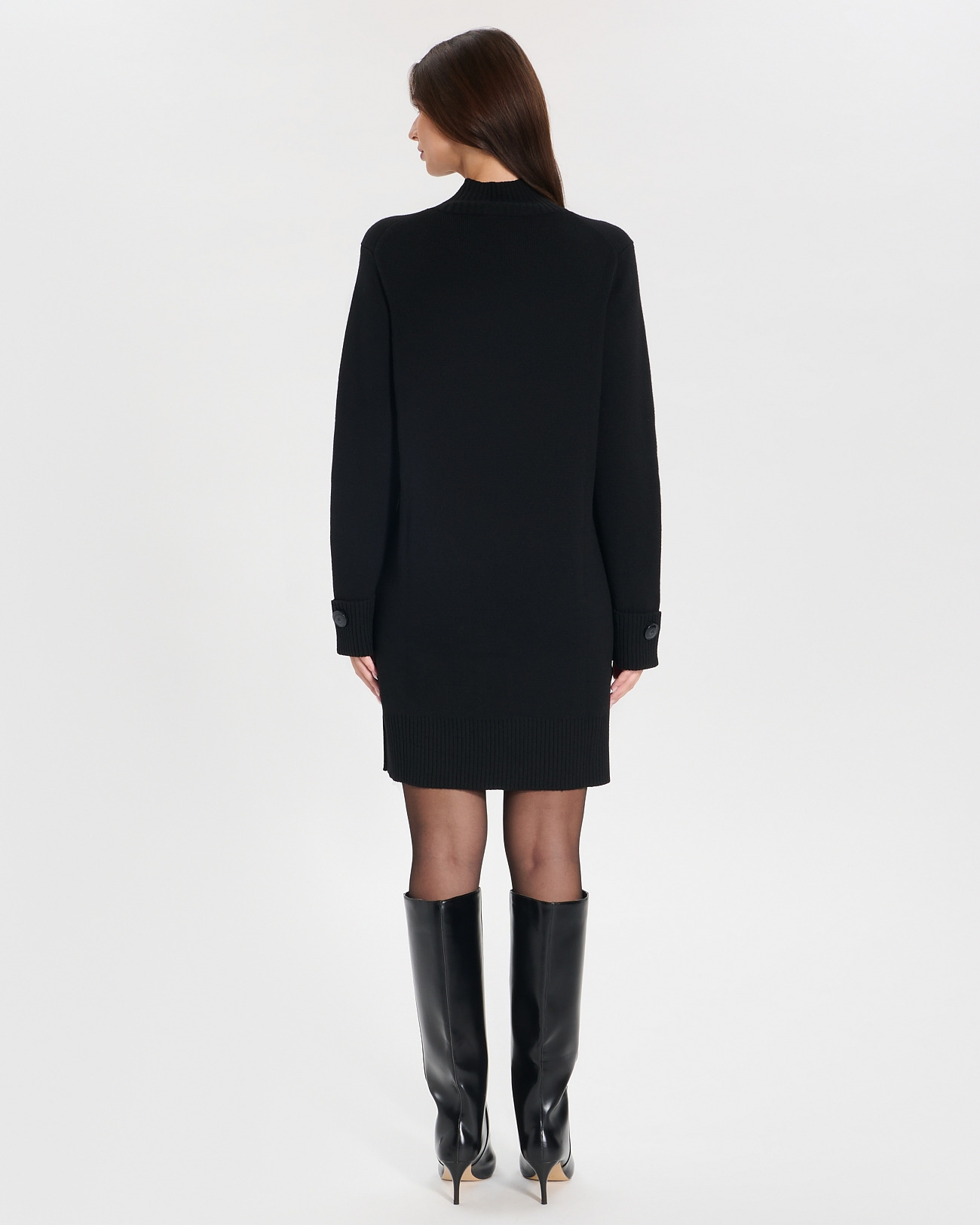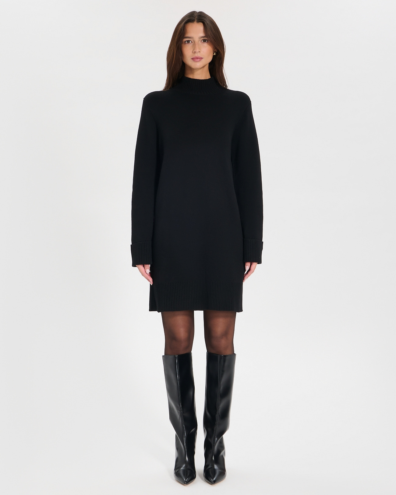Les studios ZAPA vous présentent la robe pull RITAN. Confectionnée dans une maille de qualité, elle séduit par sa coupe fluide, ses détails bord-côte aux poignets et son col montant.