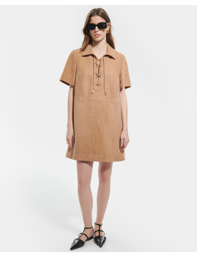 Sa matière en suède offre une sensation de douceur sur la peau et son col vareuse lacé apporte une touche audacieuse à votre style.